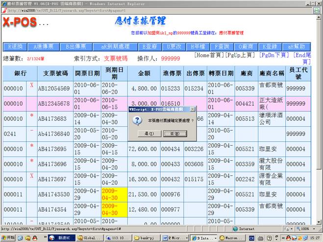 3-2. 將這張支票退回給廠商重新結帳=》點擊![]()