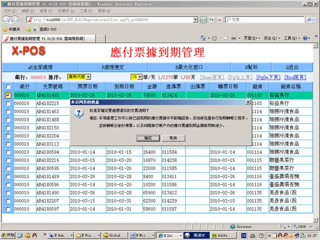 7-1. 在登廢作業中輸入銀行代號和支票號碼(101010和AB41743540)=》點擊![]()