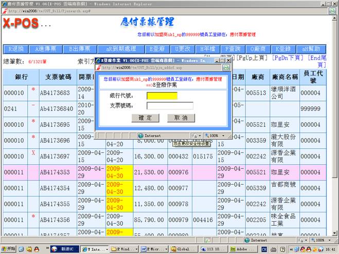 测试環境:應付票據管理,內網使用ikl_np用戶登錄。
