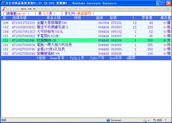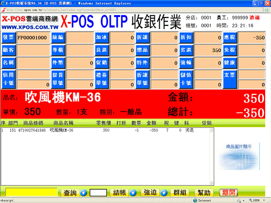 7-3、完成上步操作後,X-POS收銀界面中的白色框內將會顯示欲退貨商品的資料並在數量前加標記“-”,(注意看