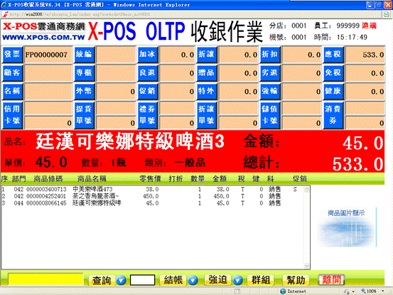 此功能與“整單折扣”操作方式類似,也是對整單而言,例如:以下所有商品總計原價為533元,要折讓33元以500元出售給顧客。商品和原售價等信息如下圖所示: