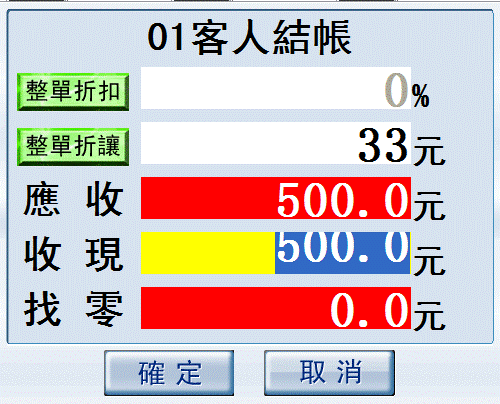 按鈕(在此以01客人層結帳為例),彈出以下對話框,點擊
