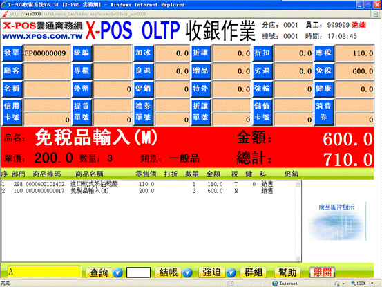 20-4、按後所輸入的資料將顯示在X-POS收銀界面的白色框內,可見金額都發生了相應變化: