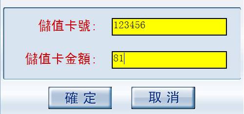 6-2、完成上步操作後,系統彈出以下對話框,用戶只需在裡面輸入顧客出示的儲值卡號和金額並按