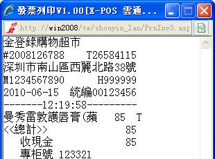 7-5、確定結帳後系統將同時彈出以下對話框和發票列印: