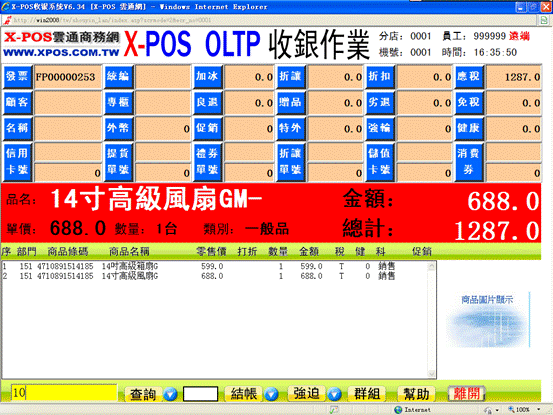 10-1、 以下X-POS收銀界面中的商品是所要更改的商品。在查詢框輸入