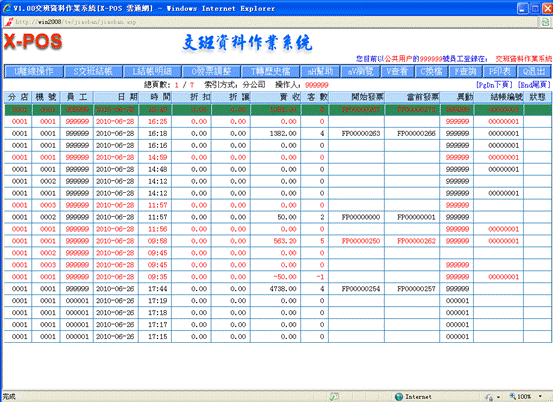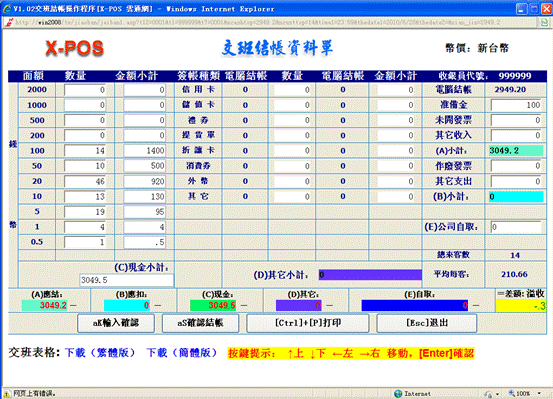 19-1、當員工在與顧客做完最後一筆結帳下班時需要進行交班結帳作業,此時只需在X-POS介面中輸入欄中輸入