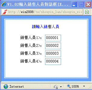 4-2、彈出以下對話框,用戶可在裡面如實輸入銷售人員代號即可: