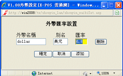 7-2、彈出以下對話框,用戶可對外幣進行設置並按鍵: