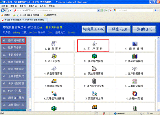 1-1.登錄一個加盟商帳號進入辦公區進入“客戶資料作業”: