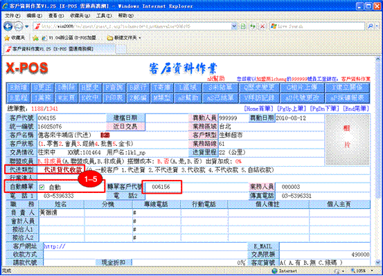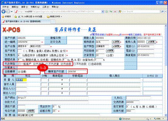 進行對代送類型進行選擇,選擇代送貨和代收款後要選中自動轉單和輸入一個轉單客戶代號如圖所示:
