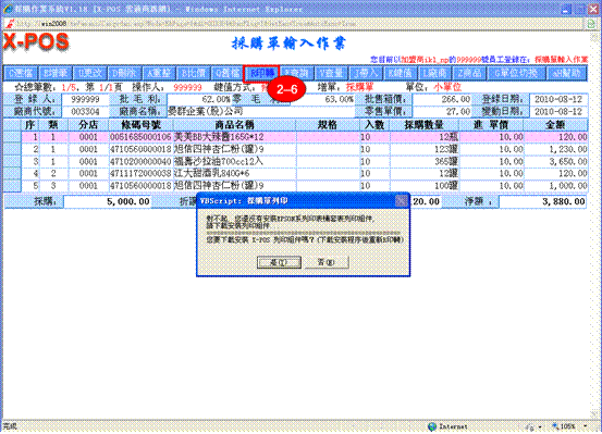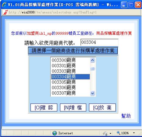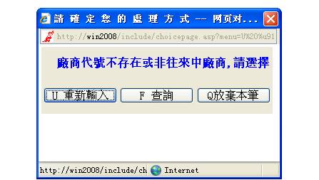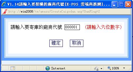 2-4-A-1.若您輸入的代號不足六位,系統會自動補零,輸入不正確或數據庫中沒有採購的廠商代號,系統將提示: