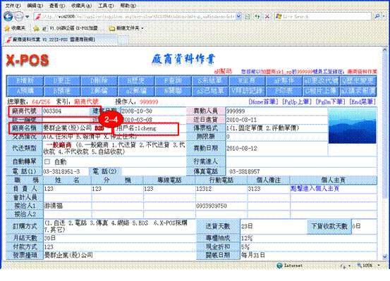 2-4.選擇剛剛和您建立的代送貨代收款的廠商代號您可以在廠商資料查詢如圖所示: