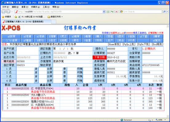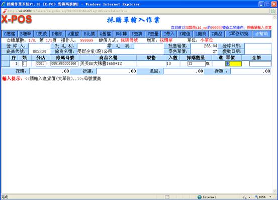 )快速切換鍵,來切換只顯示小單位的總數量,或是顯示大小單位自動換算的雙單位元顯示模式,二種模式可以適合各式不同顯示需求習慣的企業使用,雙單位例如:一箱為24罐、一打為12雙、一斤為16兩等等;單單位例如:24罐,12雙,16兩等等;輸入進退貨數量,按鍵盤上的