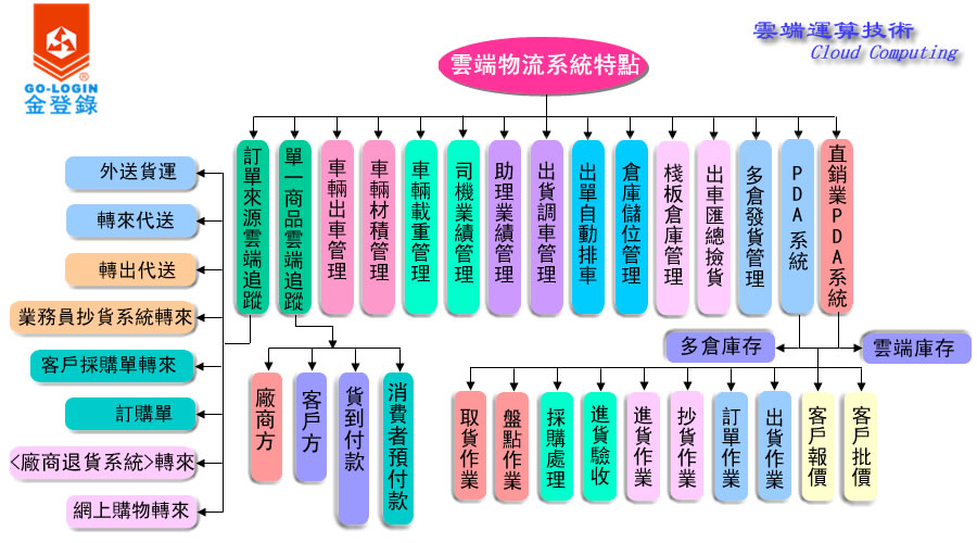 2.單一商品雲端追蹤:自客戶的採購單、購物車做B2B、B2C轉來的訂單,每一個單品都可以藉此物流追蹤系統查詢動向,完全支援即時得知單品之 |
